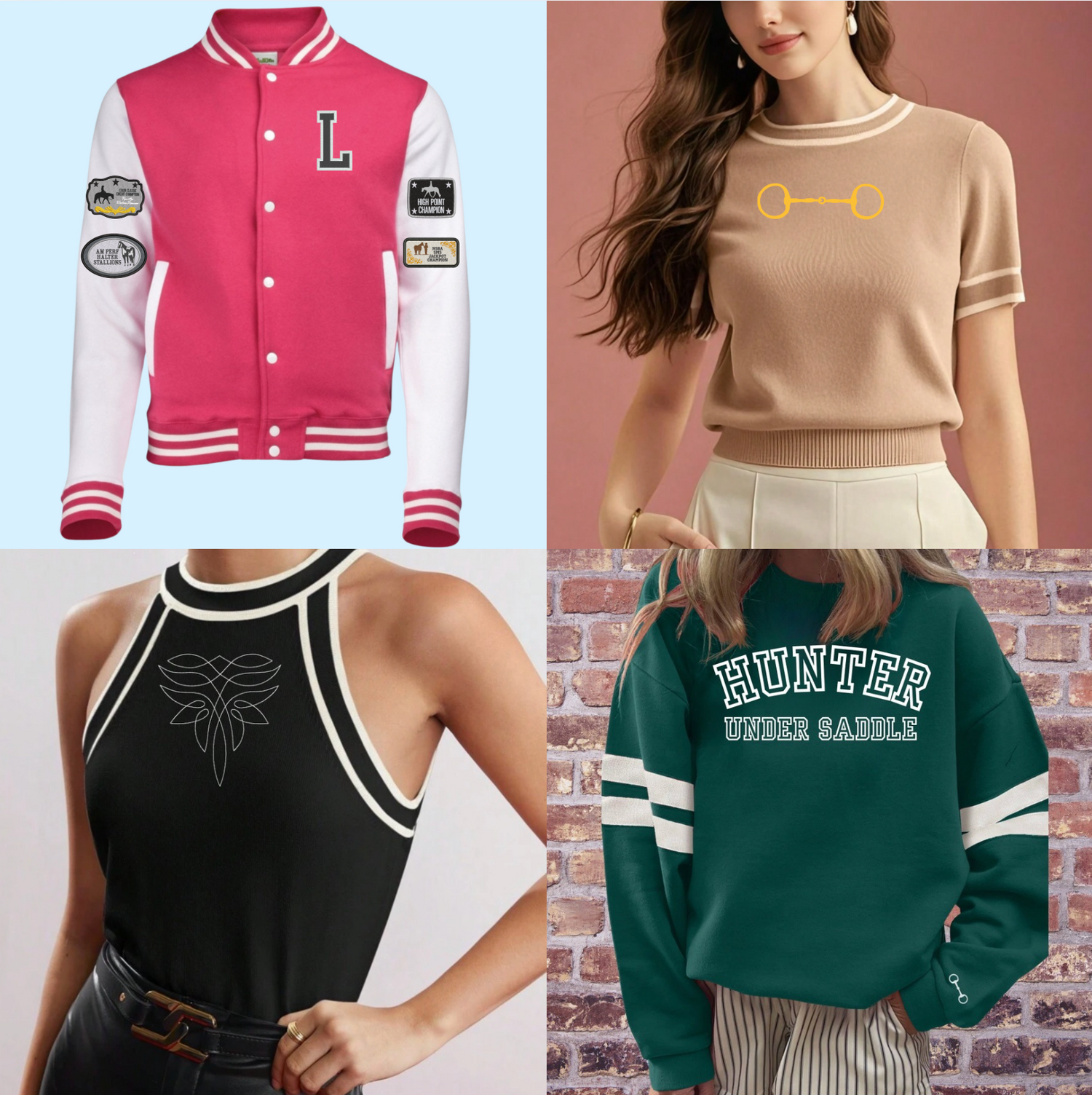 At Le Cheval — which means “The Horse” in French — we create bold, custom embroidery and screen printing for equestrians, small businesses, and beyond. From made-to-order favorites with personalization options to completely one-of-a-kind designs, everything we make is stitched with purpose and a little bit of attitude.