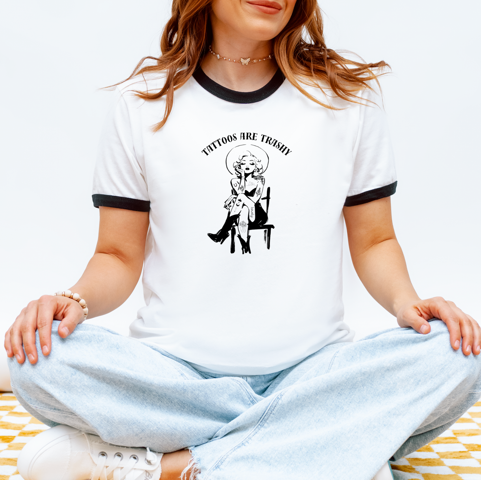 White/black ringer tee - size down for a tighter fit